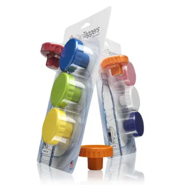 Different colored caps, of course! So that’s exactly what Fred invented with the CapTaggers™. Beyond the color coding, Fred magnetized them for sticking on refrigerator doors and made the top ‘writeable’ to further identify ownership.